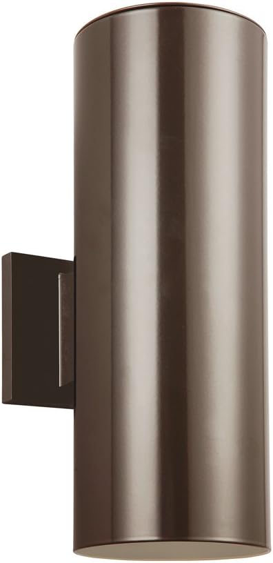 The Sea Gull Lighting Outdoor Cylinders two light outdoor wall fixture in bronze enhances the beauty of your property, makes your home safer and more secure, and increases the number of pleasurable hours you spend outdoors. The Outdoor Cylinder collection of ceiling and wall mount fixtures from Sea Gull Lighting are designed to mold, direct and shape light right where you need it. Available in White, Bronze or Painted Brushed Nickel finishes, the assortment includes small and large one-light outdoor ceiling flush mounts, small and large one-light outdoor wall lanterns and small and large two-light outdoor wall lanterns. For many of the fixtures incandescent and ENERGY STAR-qualified fluorescent lamping is available, and many easily convert to LED by purchasing LED replacement lamps sold separately. Now, fixtures with integrated LED lamping options are also available.
