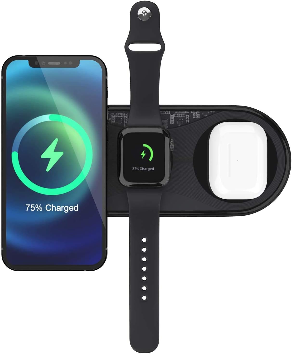 | Compatible Devices | Compatible with iPhone 13 / 13 Pro / 13 Pro Max / 13 Mini, iPhone 12 Pro, iPhone 12 Pro Max, iPhone 12 mini, iPhone 12, iPhone 11 Pro, iPhone 11 Pro Max, iPhone 11, iPhone SE (2nd generation), iPhone XS, iPhone XS Max, iPhone XR, iPhone X, iPhone 8, iPhone 8 Plus and any other Qi-enabled Phones, Apple Watch Series 7/6/5/4/3/2, Apple Watch SE, AirPods 2/Pro |